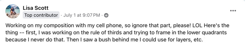 Take the composition course. (Admittedly, not everyone stands to benefit as much as I, composition is my Achilles' Heel, and I knew it.) Katelyn taught me to see things I didn't know I could see. I'm practicing away now, and I don't think I could have achieved shots like this three months ago. I'm excited to keep learning and practicing!