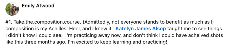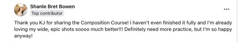 I've taken everything I have learned, every tip I have utilized, and every system I have created and built them into an all-encompassing, compostition-focused course that is committed to empowering you to not only be able to SEE powerful composition, but also be able to easily CAPTURE IT as well!